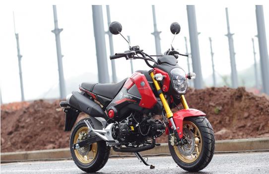 Model:GY125-MSX2016Dimension.(L×W×H)(mm)1700×700×860Wheel base(mm)1200Min ground clearance(mm)180Seat height(mm)710Turning angle<48°Min turning radius(mm)1700Front/rear sprocket teeth14/35Gearshift4-forwardFuel tank(L)6.5L Fuel TypeGasolineMax. Load Capacity(kg)150Dead Weight(kg)93Displacement/Power(ml/kw):125ccEco fuel consumption(L/100km)1.8LBrake Mode:Front WheelDisc brakeRear WheelDisc brake Front WheelManualBrake Operation ModeRear WheelkickWheel Rim TypeAlumilium wheel: 2.50-12Alumilium wheel: 2.50-12Tire typeWith tubeFront tire120/70-12Rear tire130/70-12Head light12V 35W/35WWinker12V 10WEco fuel comsumption(L/100km)1.8Battery(mm)Maintenance Free: YTX5L-BS 114×71×106 Engine Model156FMIEngine Type1-Cylinder, 4-stroke, air-cool, Single Over Head CamshaftStartElectric and kickIgnitionCDIBore×Stroke56.5×49.5Displacement(ml)125ccCompression rate9.1:1Magneto12V 6 head, full phaseOil Capacity(ml)800Spark plugA7TCSpark clearance(mm)0.6~0.7Valve clearance(mm)0.05~0.06Lubriation typePress and splashCarburetorPZ19TransmissionConstant mesh, 4-forward, with high shift protectionClutch typeAutomatic, wet type, offcenterInitial rate3.722Gears rate1st: 3.273,2nd: 1.938,3rd: 1.350,4th: 1.043Final transChainRotation directionFacing shaft, unclock wiseSize(mm)477×395×280Net Weight(kg)25Rated Power7.0KW(8000r/min±5%)Max Power7.8KW(9000r/min±5%)Max Torque8.5N·m(7500r/min)Min fuel comsumption(g/kw.h)367Load Quantity40HQ108 units